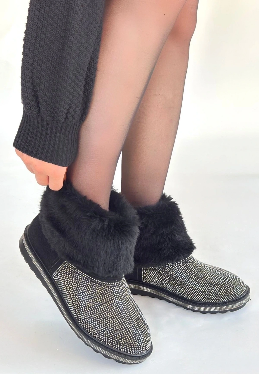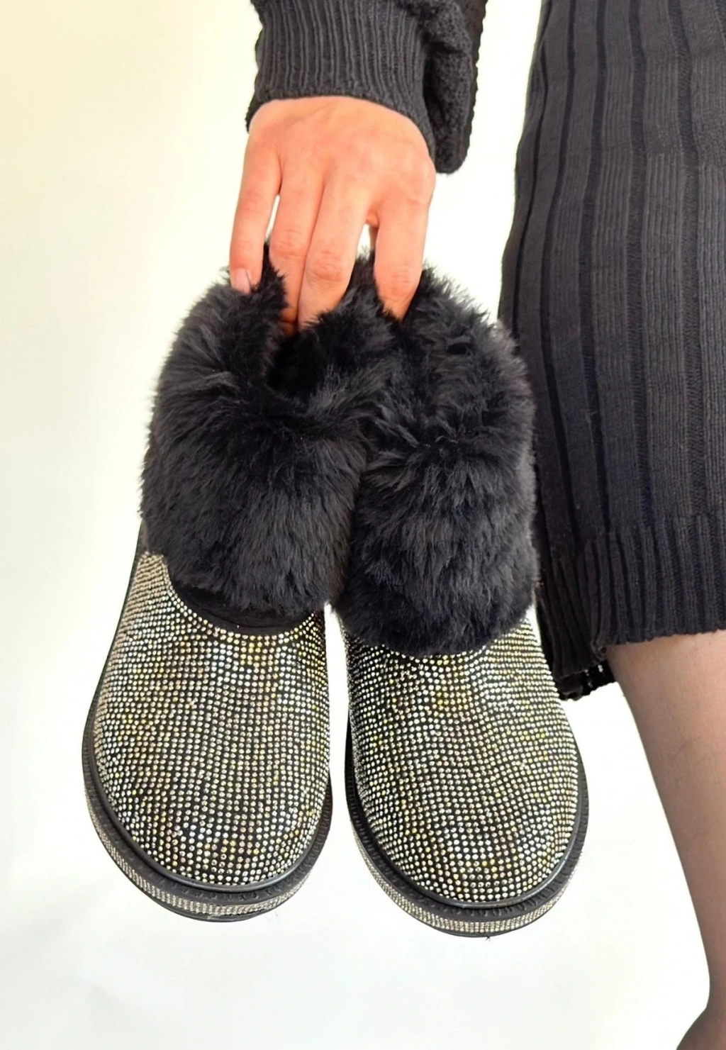 • Linka Siyah Süet Gümüş Boncuk İşlemeli Bot