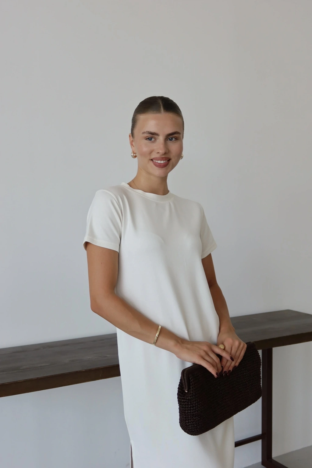 • Modal yırtmaçlı elbise beyaz pt