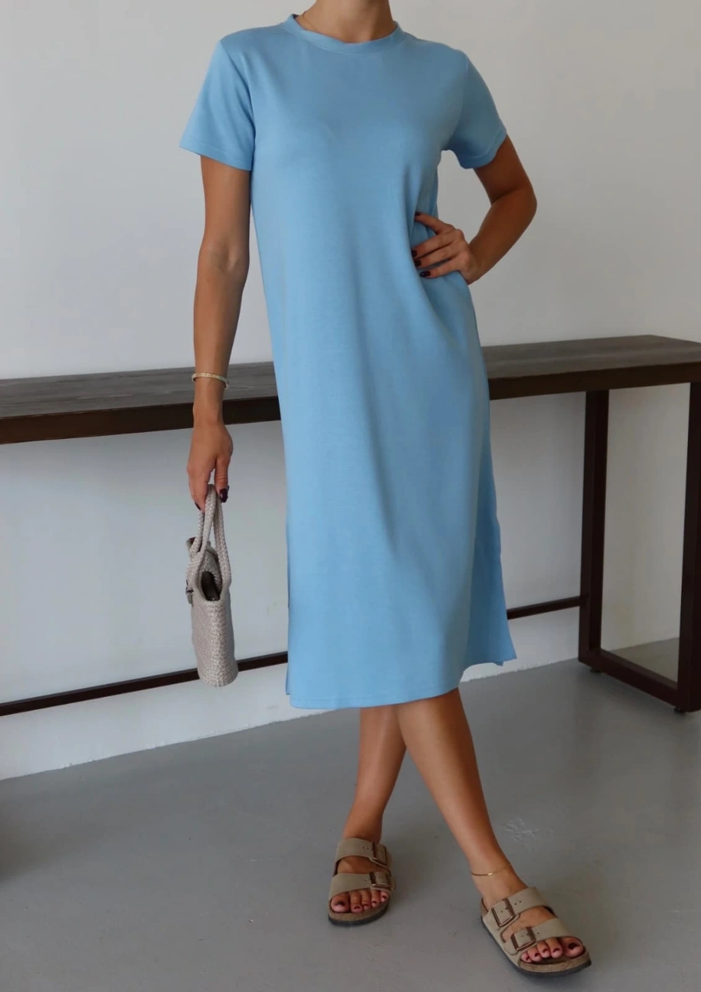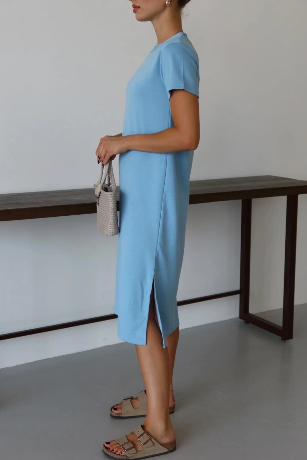 • Modal yırtmaçlı elbise mavi pt