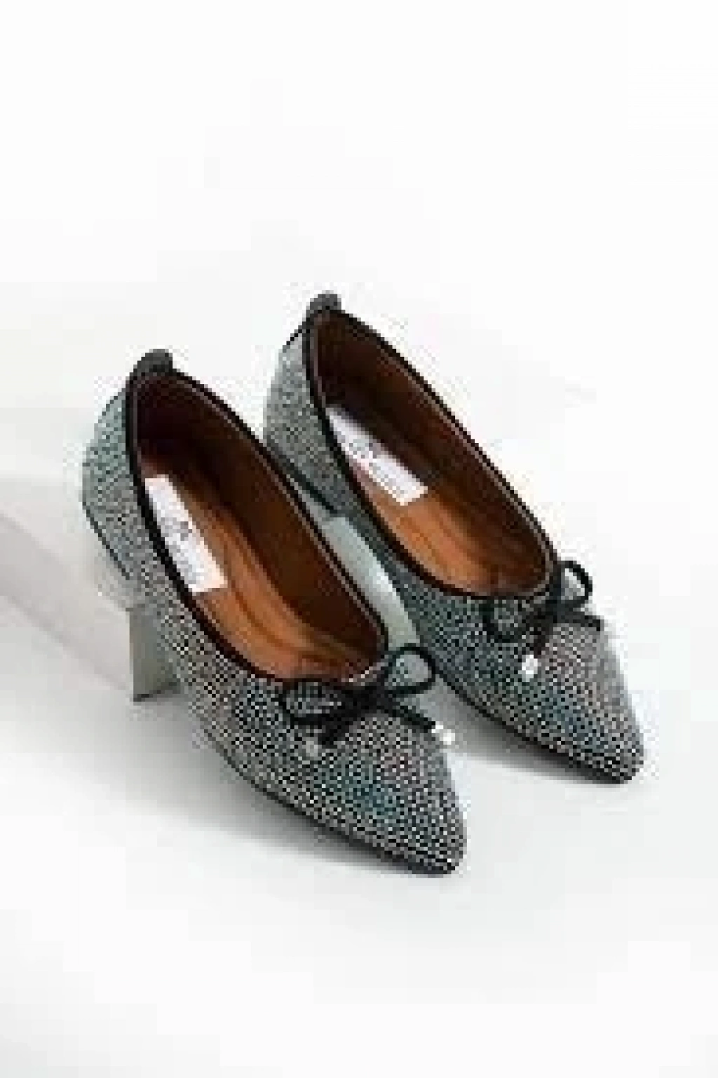 • Sarra Siyah Saten İşlemeli Babet Ayakkabı