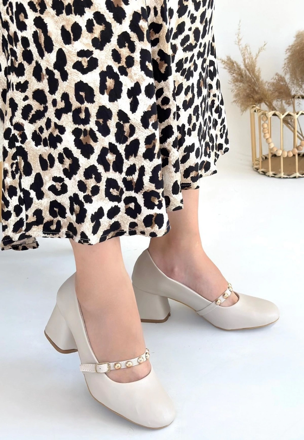 • Tino Bej Cilt Topuklu Ayakkabı